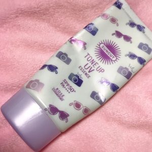 このトーンアップUVの上からいつも通り化粧すると、べたつきも感じず、むしろ普段より肌が明るく見え、化粧がとてもキレイに映えていました。
